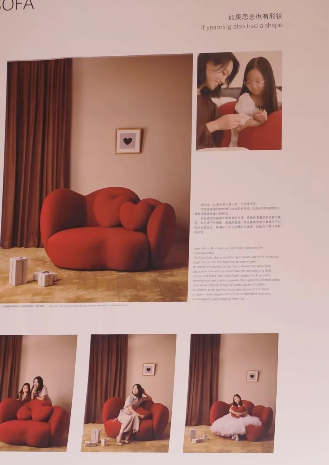 这沙发藏着满满的小心思,念念给它起名“念沙发”,用三颗连在一起的心拼成,分别代表爸爸、妈妈和自己,她说“这样才像一个家”。