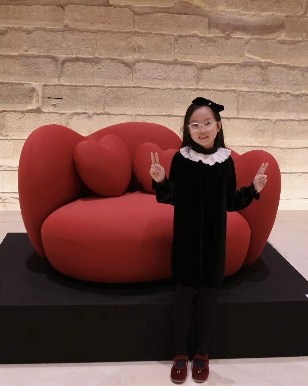 朱丹最近的一条朋友圈,直接把大家看惊了——她8岁的女儿周念如,设计的沙发竟然摆进了法国卢浮宫。